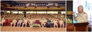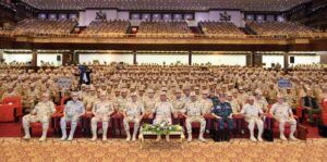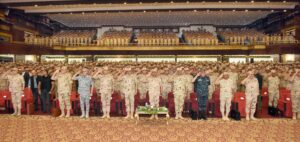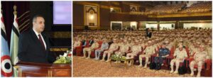 أعقبها عرض تقديمى لعدد من قادة القوات المسلحة تناول التحليل الإستراتيجى لمختلف الأحداث الجارية على الصعيدين الإقليمى والدولى وما يتطلبه ذلك من وضع أطر ومفاهيم صحيحة لإعلاء مصلحة الوطن فوق كل إعتبار .